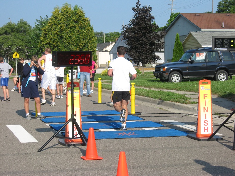 Now Available - Rain Cap to fit the Electro Numerics Race Clock (example shown below). This will provide a waterproof cover for your Race Clock and still give excellent visability to the finishers. Has velco fasteners on bottom to insure it will stay in place even in a Gale Force wind. $150 plus shipping. This one fits the 6 digit 6" flip or LED model. The 6 digit 9" model cap is $175. Have a different make/model? No problem, send me your dimensions and or make/model number and I can make one to your specs.